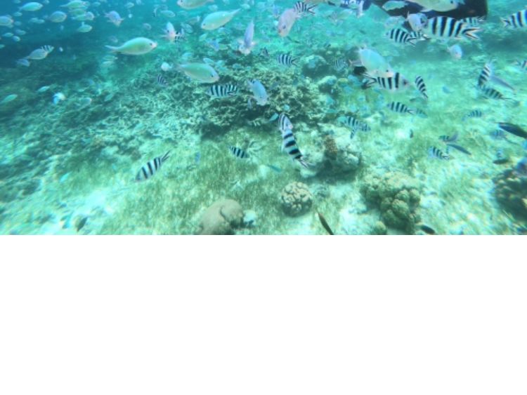 現地のスタッフに背中押してもらって、素潜りでとても近くで魚とさんご見れました。