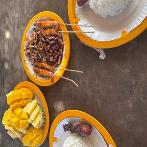 お昼ご飯は、フィリピンスタイルのBBQ串ですが、温かいスープや麺料理、フルーツの盛り合わせもありますので、大変多くの方に喜んでいただいております。