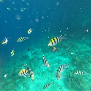 最初のシュノーケリングスポットは美しいサンゴと魚たち、運が良ければロウニンアジという大きな魚の群れを見ることができ、2箇所目のナルスアン島では大量に泳ぐ色とりどりの魚を見ていただけます。