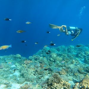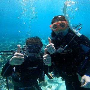 ダイビングは初めてで酸素ボンベをうまく使えるか不安だったのですが、丁寧な説明と実践練習のおかげで呼吸法に慣れてから潜ることができました。水中カメラを持っていくことをおすすめします!私たちは奇跡的にGTを見ることができました!その他にも綺麗な魚がたくさん見れますし、海中でもスタッフの方にカメラを預ければ写真を撮っていただけます。