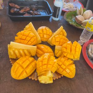 食事はバーベキューとマンゴ、パイナップルと南国風で良かったです。