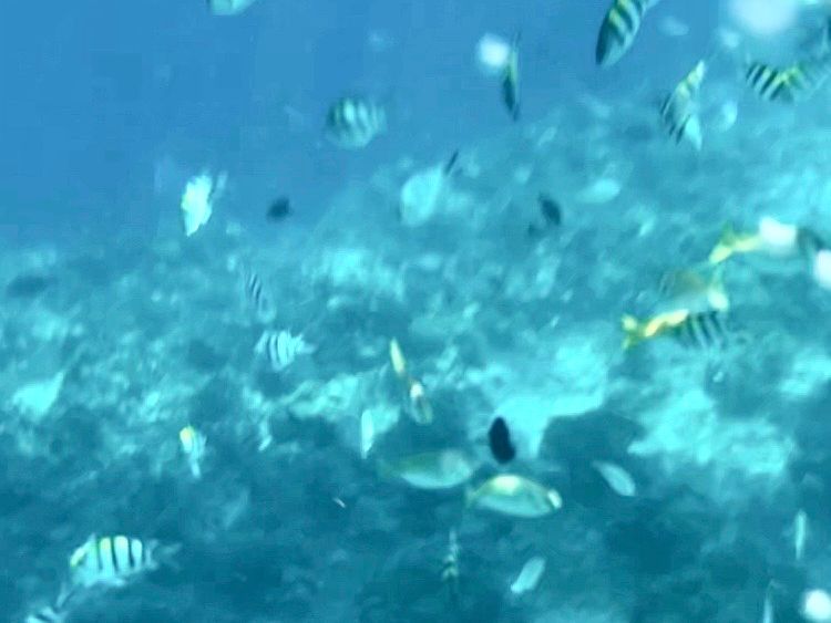 海では想像以上に魚がいて、小さい南国のカラフルな魚から