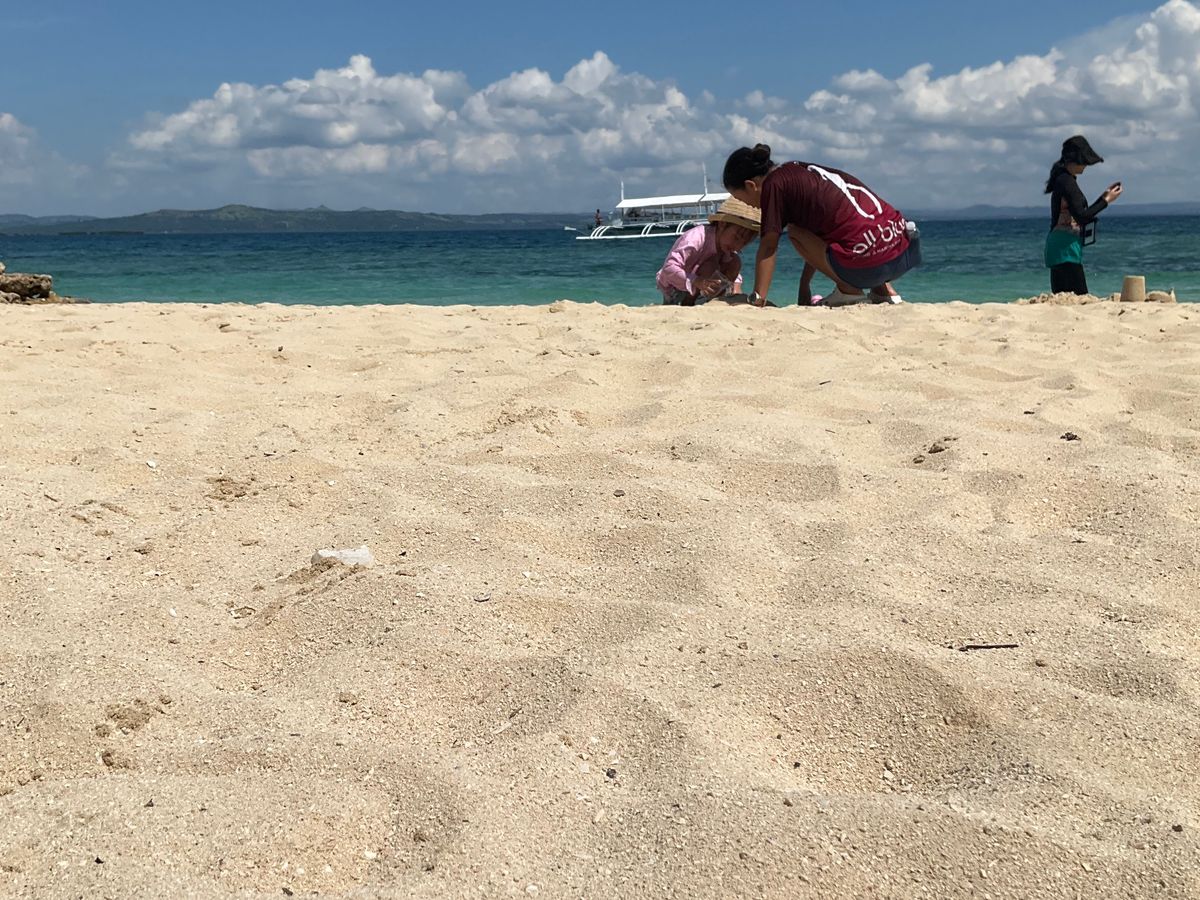 初めてセブ島に来たのですが、浅瀬の海が綺麗で感動しました。船に乗るときに手を貸してくれたりとても親切でした。