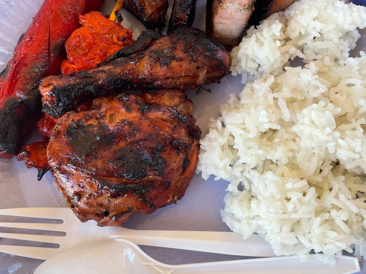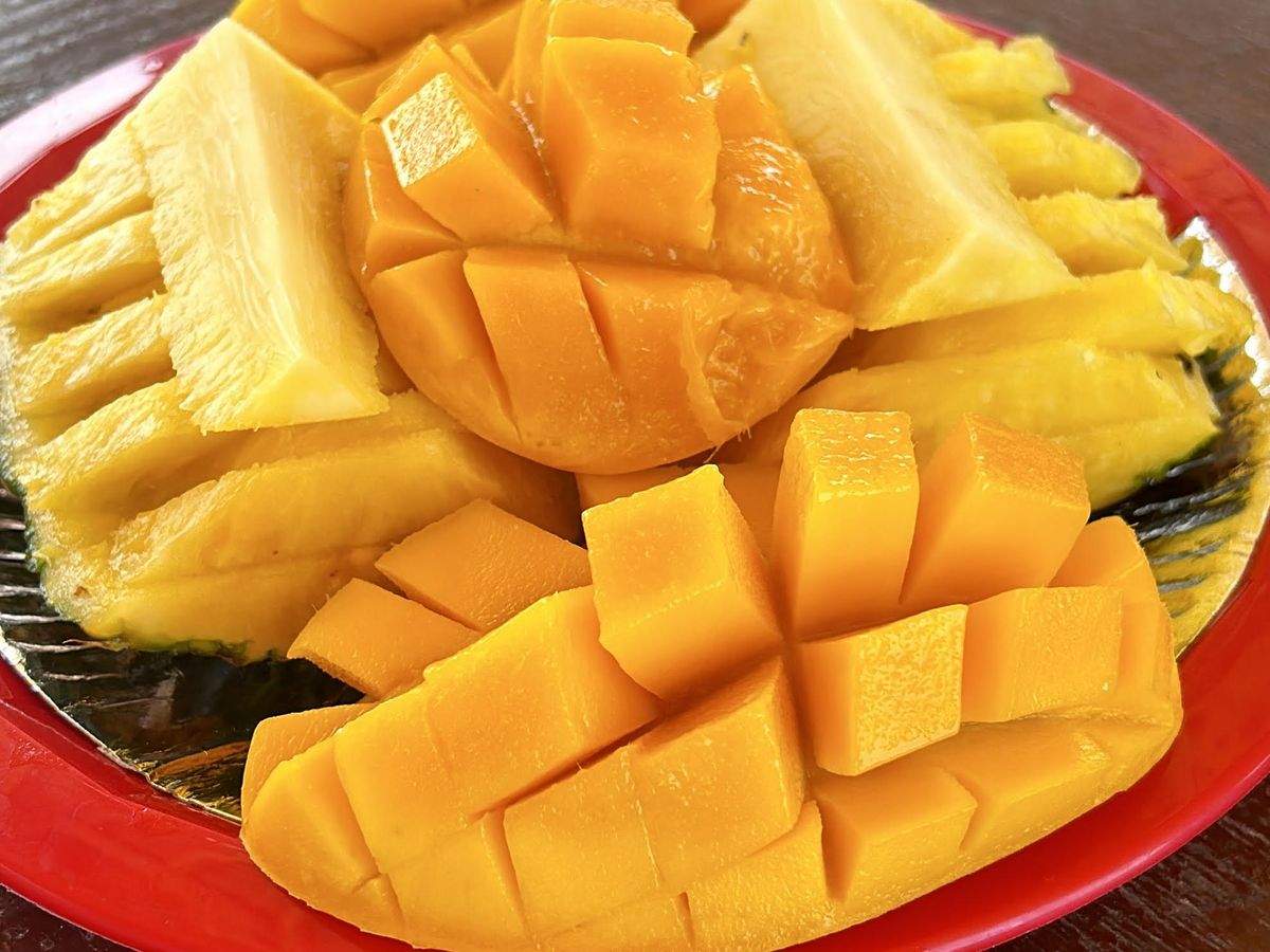 美味しいお肉とごはん、デザートはマンゴーとパイナップルでした!