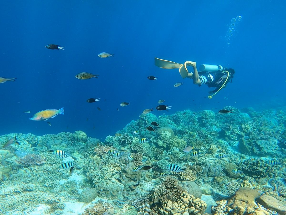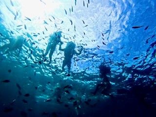 ダイビングは初めてで酸素ボンベをうまく使えるか不安だったのですが、丁寧な説明と実践練習のおかげで呼吸法に慣れてから潜ることができました。水中カメラを持っていくことをおすすめします!私たちは奇跡的にGTを見ることができました!その他にも綺麗な魚がたくさん見れますし、海中でもスタッフの方にカメラを預ければ写真を撮っていただけます。