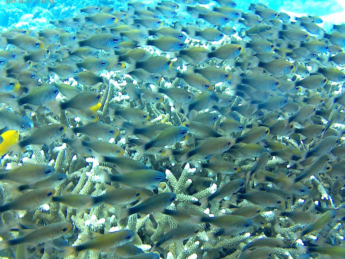 浅瀬で珊瑚や魚の群れと戯れ素晴らしい体験をしました。。
