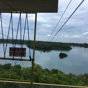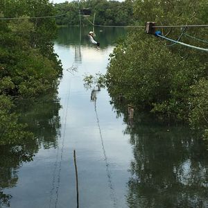 海につながる大きな湖の中の小島まで、高低差を利用して下るジップラインはスリルとスピードで気分爽快です‼︎
