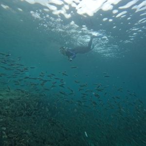 浅瀬なのに透明度よく、直ぐにイワシの群れがあり、びっくり