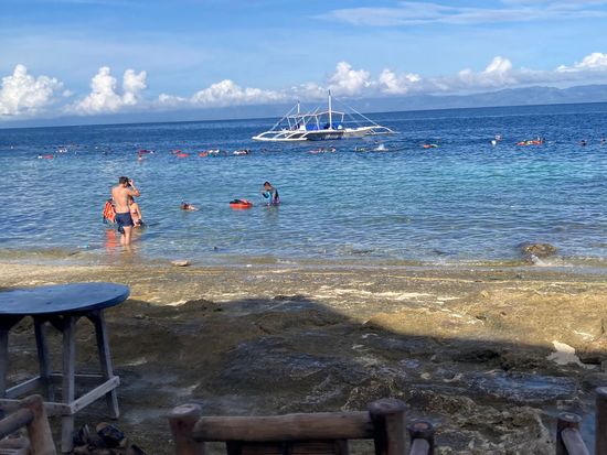 現地ガイドさん親切で小学生の娘も安心安全に体験できました!朝3時シャングリラマクタン出発、6時頃オスロブ着、車移動時間は往復とも長いですが、待ちの時間はあまりなくスムーズだったと思います。オスロブもモアルボアルも少し波があったけど、ジンベイザメとイワシ玉とウミガメに会えて十分楽しく、満足です!