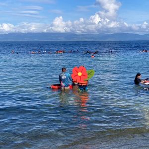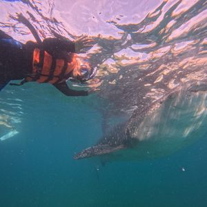 夫婦、子供(6歳、4歳)の4人で一緒に参加させていただきました。小さい子がいたので、車は専用車をチャーターし、長時間の移動にもかかわらずリラックスして過ごすことができました。口コミをよんで、カーディガン持参と、事前に酔い止めを飲んでいったので、特にトラブルなく過ごせました(ガイドさんの話では、他のお子さんで船で嘔吐していたという話があったのと、車もかなり揺れたので、酔い止めは出発時に絶対飲んでいったほうがいいと思います)。ドライバーの方、ガイドさんも日本語が堪能で、終始安心して過ごすことができました。ジンベイザメスポットに到着後、現地にはたくさんの人が並んで待っていましたが、事前予約していただいていたおかげで、ほとんど待つことなく順番を迎えました。ガイドさんは本当にいい人で、的確な指示のもとジンベイザメとのたくさんの写真と動画を納めてくださいました。子供たちは最初怖がっていましたが、ガイドさんが本当によく面倒を見てくださって、最後はニコニコで楽しむことができました。シュノーケルのマスクは子供サイズのものも貸し出してくれたのですが、下の子はマスクをうまく装着できず、ジンベイザメを上からしかみることができなかったのが少し悔やまれました。小さい子には顔を全部覆うタイプのものがおすすめのようで、子供連れの方は、事前準備して持参して行くことがおすすめです。