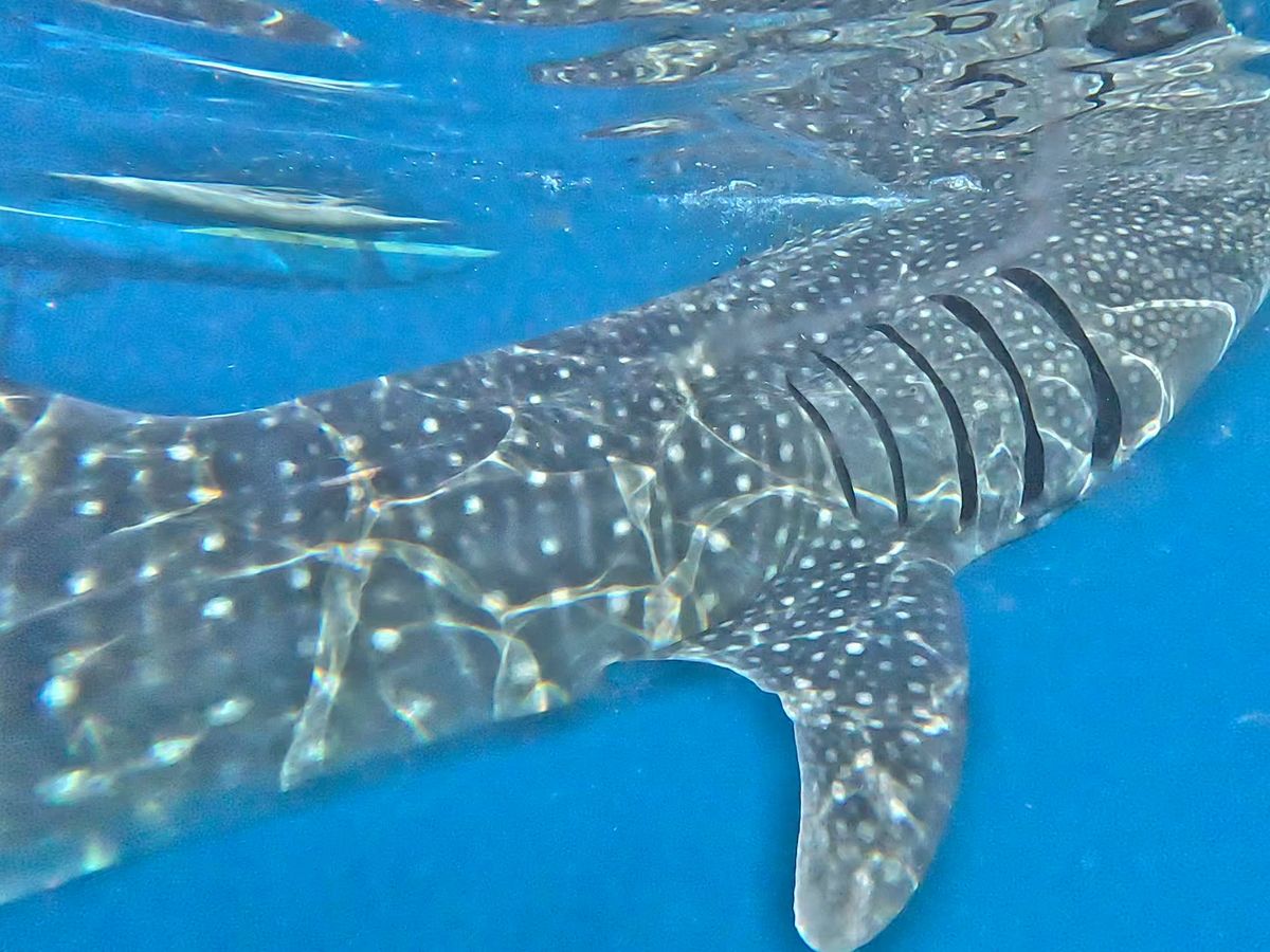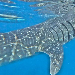 ジンベイザメは通常だとものすごく長い時間待つと事前情報にあったので、子どもも一緒だったため待ち時間が短くて済むこちらのツアーにしました。ツアーのタイトル通り、待ち時間はほんの10〜15分ほどだったかと思います。遊泳時間は恐らくほんの30分ほどで、写真撮影に忙しくなりがちなので、もう少ししっかりと目に焼き付けておけば良かったなと思います。