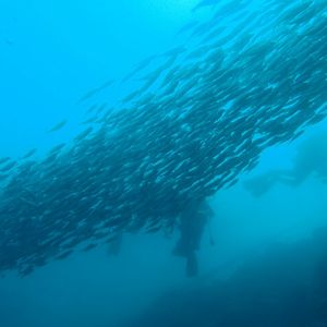 次にイワシの大群スポットへボートで移動です。多すぎてびっくり!そしてキラキラしてて綺麗!人が通るときれいに避けてくれます笑まるで映画の中のような光景でした。