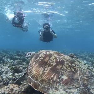 以前にも他国でシュノーケリングを予約したことがあるのですが、ジンベイザメ、ウミガメ、イワシの大群、サンゴ礁すべて見ることができて、今までで一番満足度が高いと思います!