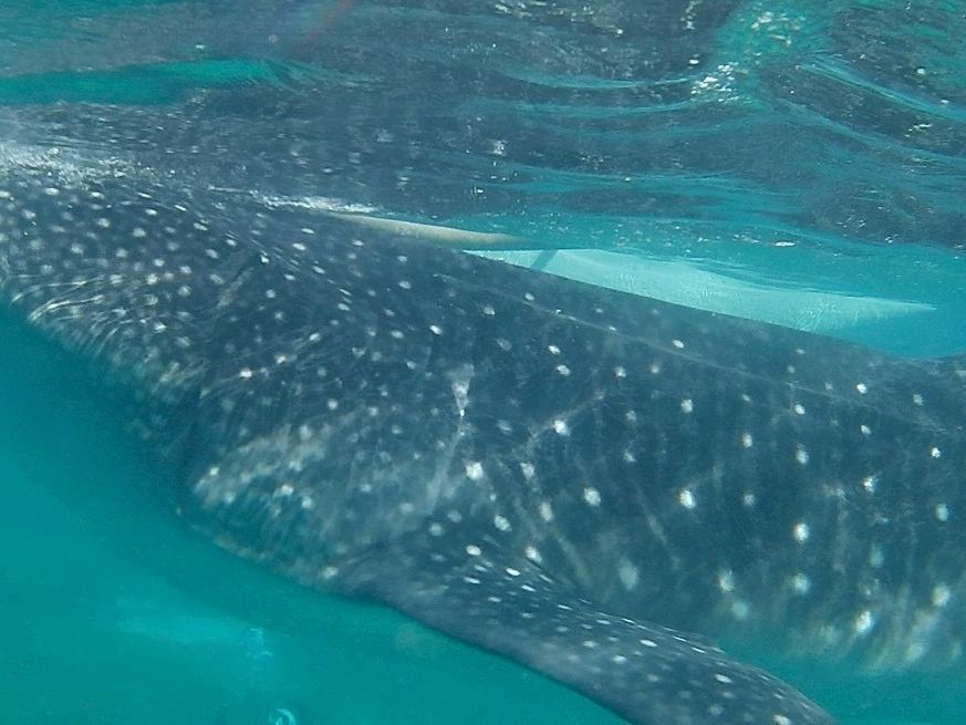 ジンベイザメは触ってしまうくらい近くまで来る。GoProを借りたら、ずっとガイドさんが撮ってくれるから、見るのに集中できてよかった。