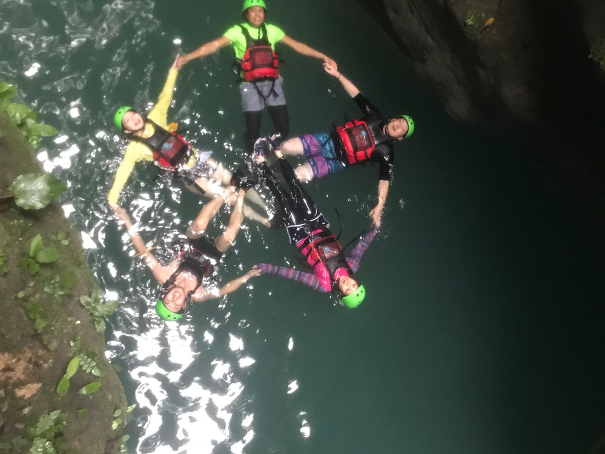 基本的に沢下り、山中を下っていく内容ですが川への飛び込みポイントが多い(6〜8ヶ所くらい?4〜12mからの飛び込み)