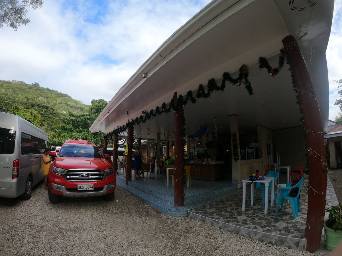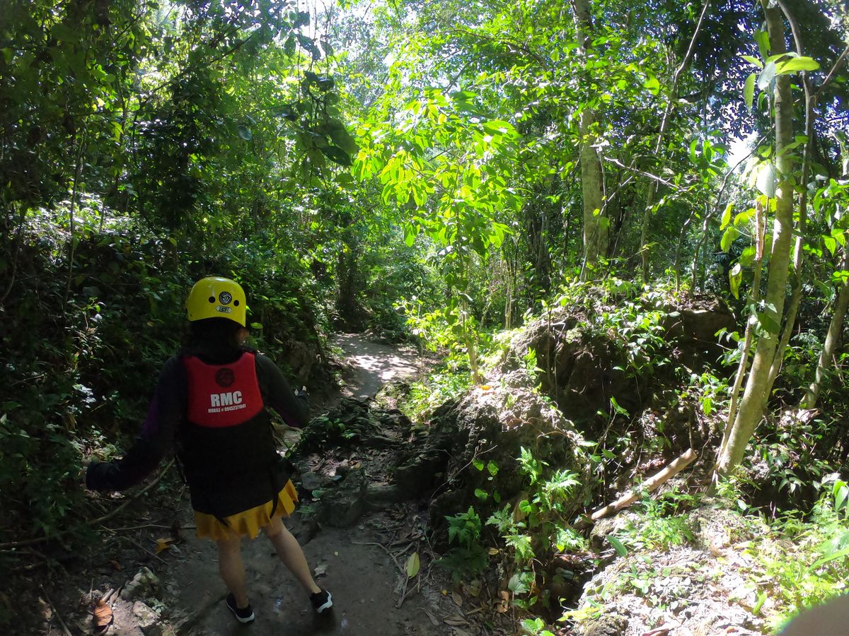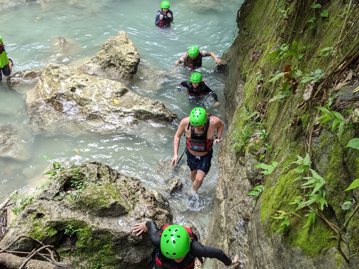 キャニオリングは3、4時間かかると言われたので先にご飯を食べた。海沿いで豪華な料理をいただいて(お肉もお魚もえびもマンゴも全てが美味しかった!)、ライフジャケットとマリンシューズをもらいカワサン滝に向かう。