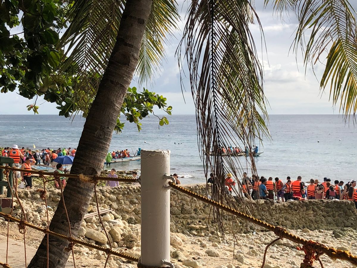 集合はすごく早かったけど、目的地まで3時間かかったので車内でよく寝れた笑。到着後にガイドさんが番号を取ってくれて、順番がくるまで約15分かかった。順番が来たらシュノーケリングマスクぽいっと渡されていざ海え!ボートを乗り約2、3分で到着。降りていいって言われて気持ちよく海へジャンプ〜