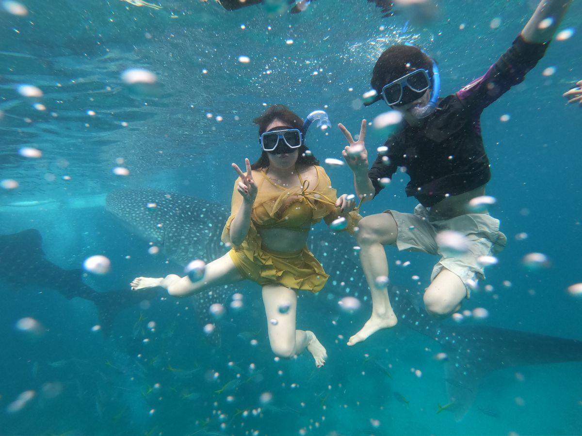 シュノーケリング初めてだったので最初はすごく戸惑ったし、潜ろうとしたらシュノーケルにめっちゃ海水が流れ込んだ。不器用だから結局シュノーケルを使わず素潜りにした笑。サメさんがすぐそこに来てるし、シュノーケリングの時間も結構長いので、思い存分に写真を取れた。