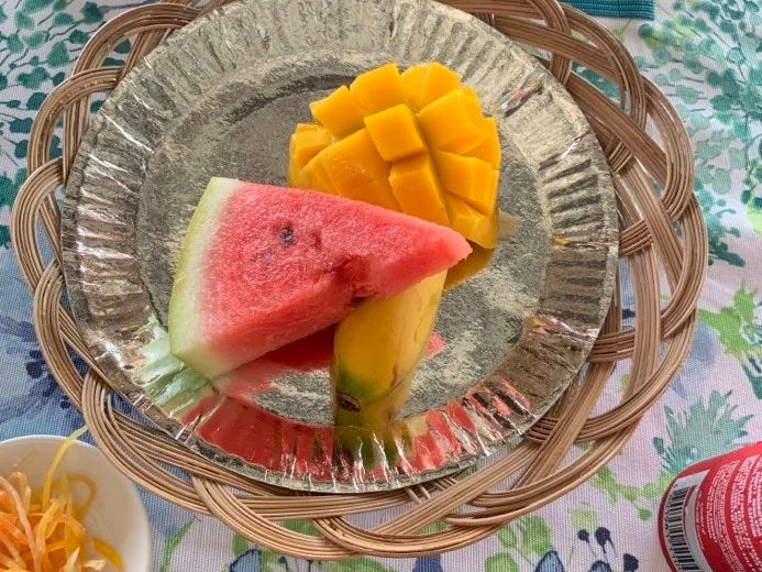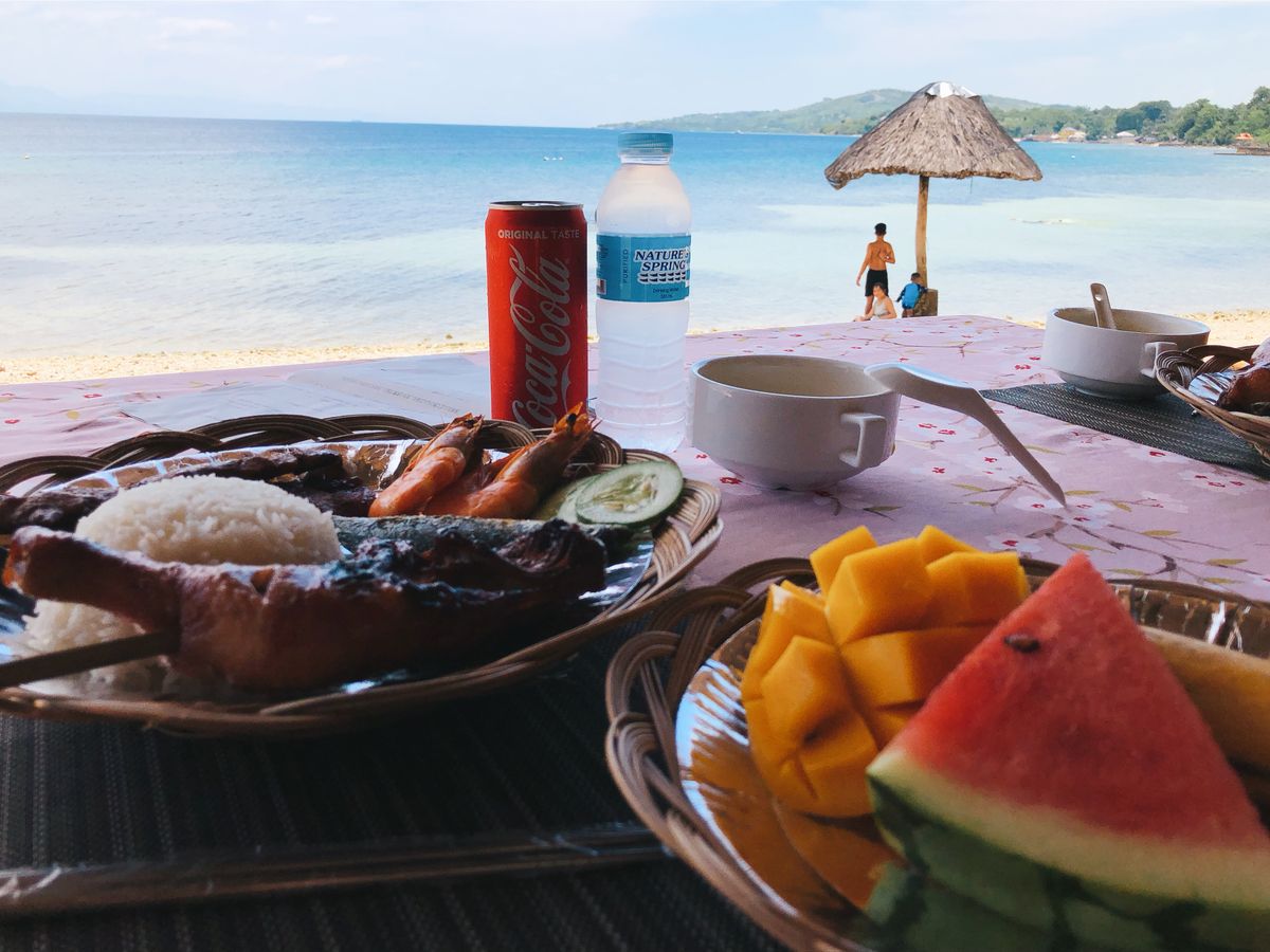 屋根のある海のビーチ近くだったので、蚊帳のような虫対策があると、虫慣れしていない人でもゆっくり食べられたような気がします。
