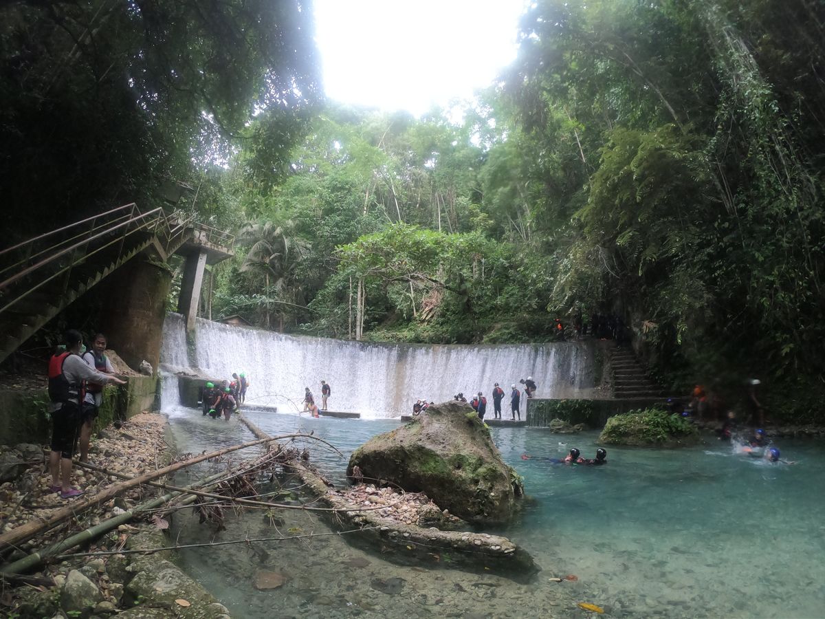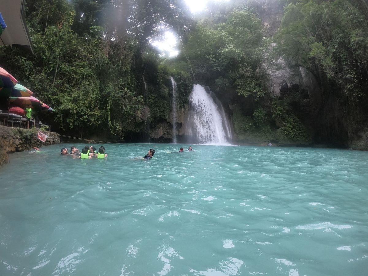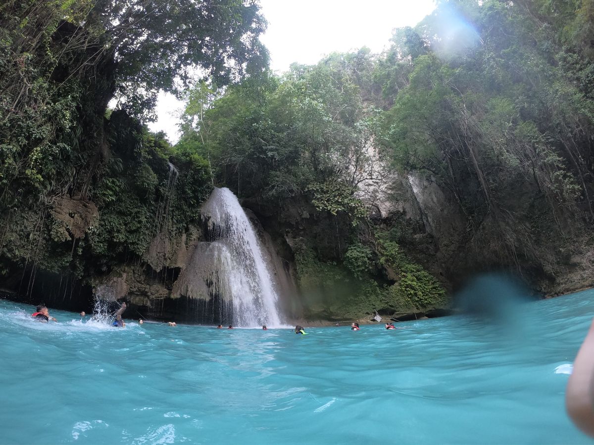 そして、ジンベエザメツアーの場所から1時間ほど移動し、海の前のレストランで昼食を食べた後にそこから車で15分ほどのカワサン滝に向かいました。軽く説明を受けた後にかなり険しい山道を歩き始めます。その後水辺に着くと六ヶ所ほどジャンプポイントがあり高さも4m〜12mでどんどん高くなっていきます。どこも素晴らしい景観でやはりGoProは必須アイテムだと感じました。参加人数が2人だったということもありガイドの方と現地のスタッフ方の4人で行動しましたが私たちのペースに合わせてくれてスムーズに進むことができました。少し休憩もはさみましたが3時間半ほど泳いだり歩きっぱなしでハードであることは間違いないです。足場もよくないので底の厚いマリンシューズがあればいいと思います。途中でリタイアするのもなかなか難しそうなので、体調は万全の状態で行くことをオススメします。
