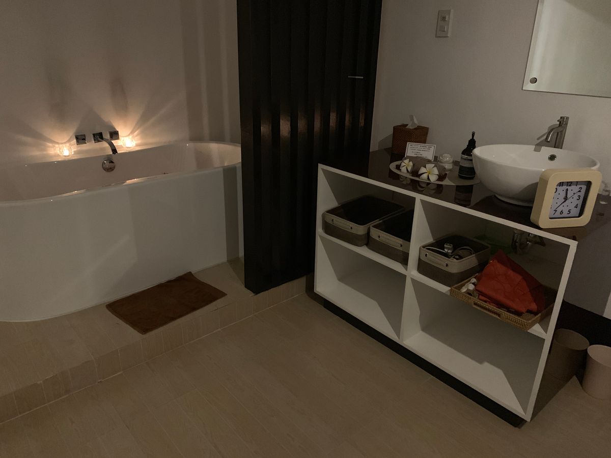 白を基調とした綺麗なお部屋で、湯船に浮かべた花々から立ち上る香りに包まれ、