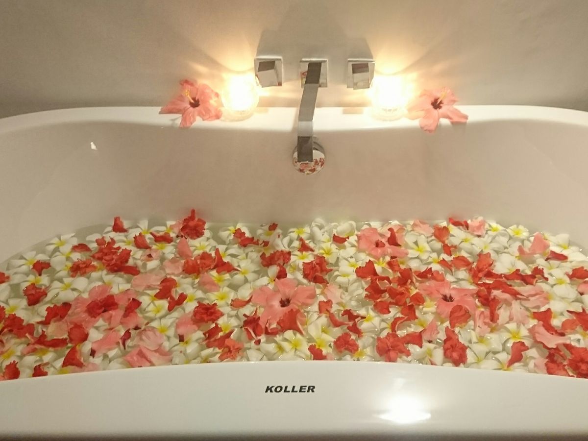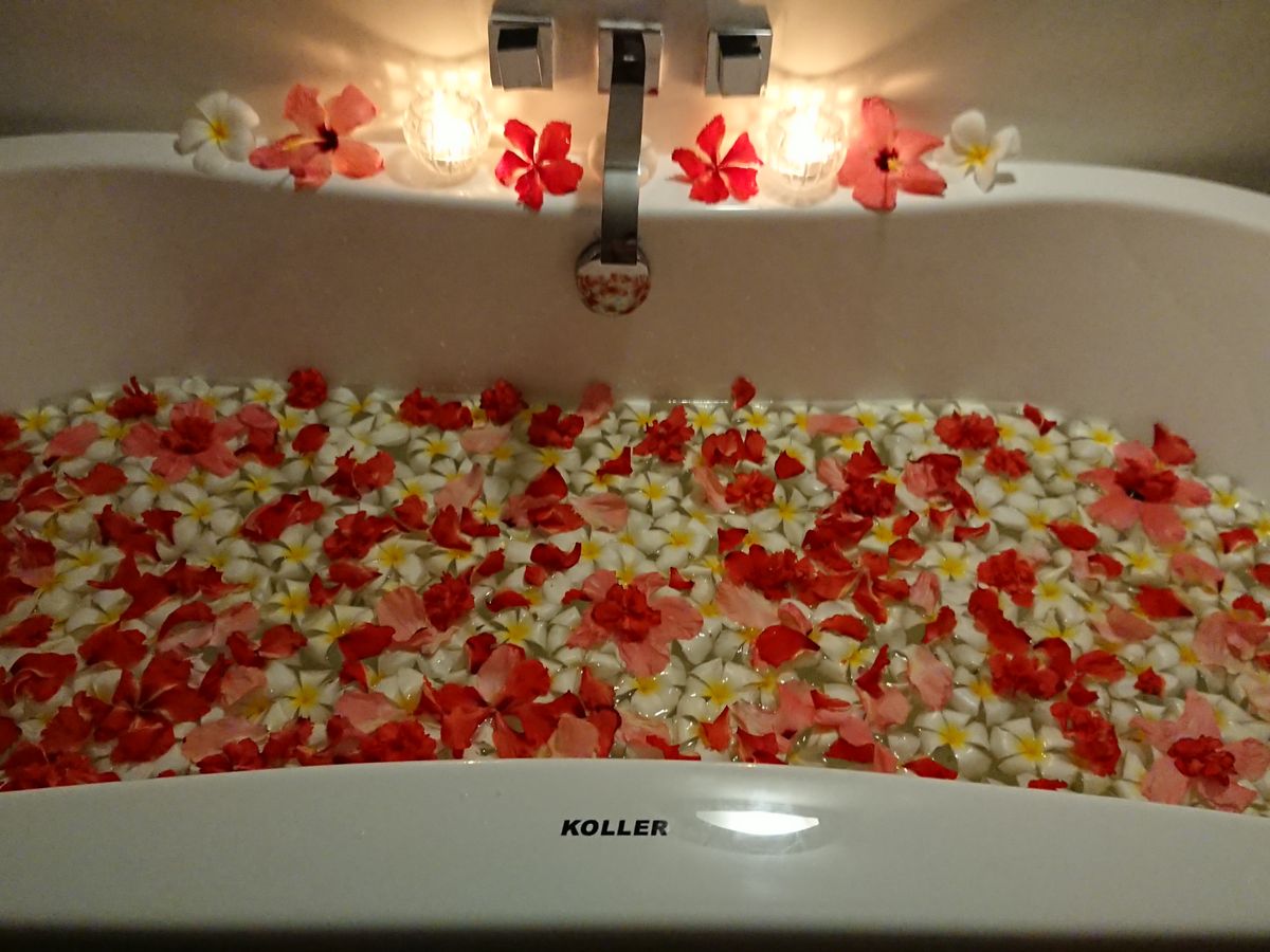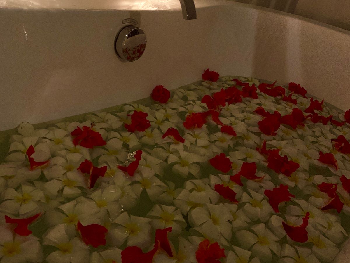 一通りマッサージが終わったらフラワーバスで体を流します。こんな贅沢に花を使ったフラワーバスなんて体験したことない!ハートを崩すのが勿体なかったです(泣)