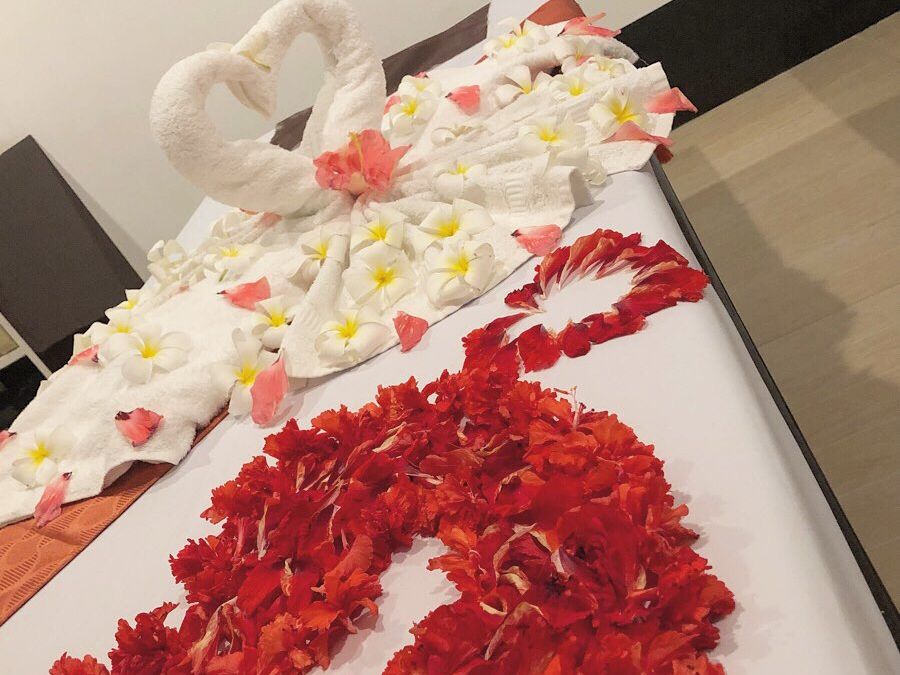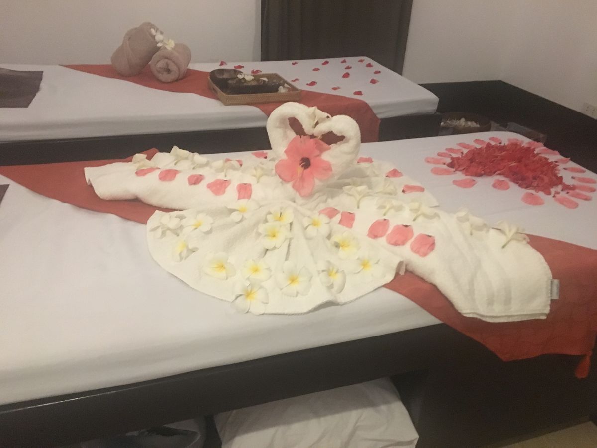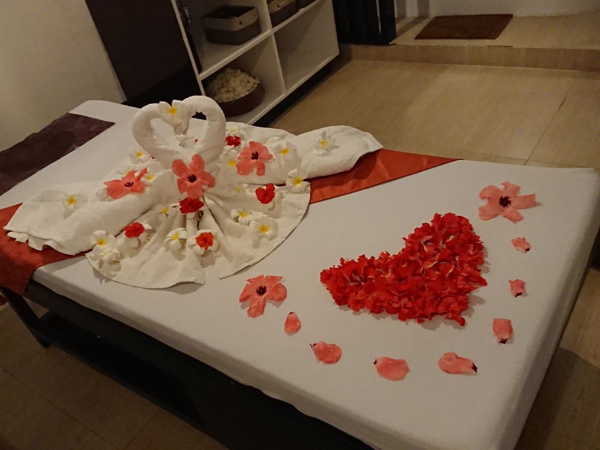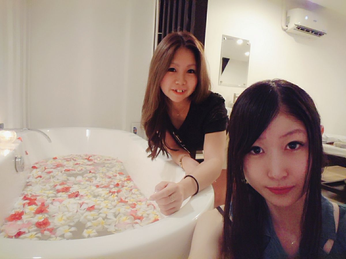 一通りマッサージが終わったらフラワーバスで体を流します。こんな贅沢に花を使ったフラワーバスなんて体験したことない!ハートを崩すのが勿体なかったです(泣)