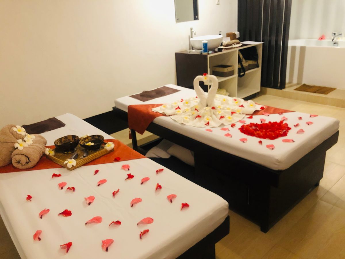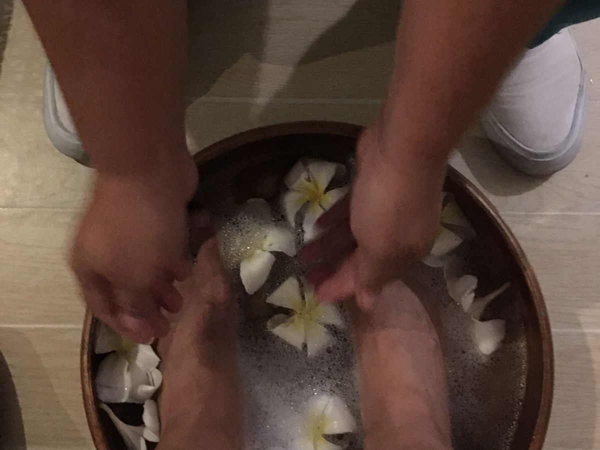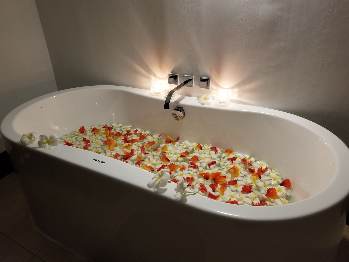 始めにフットスクラブ、フットマッサージをしてもらい、次に全身のマッサージとヘッドマッサージを受けました。担当してくれた現地の方もとても丁寧な対応で、マッサージも気持ちよくとても良かったです!最後にシャワーを浴びてフラワーバスの流れでした。2人で行ったのでフラワーバスは交代で入りました。キャンドルが焚かれていて素敵な空間でした。気になった点はシャワーが少し冷たかったことです。初めてのスパ体験でしたが充実した120分でした!