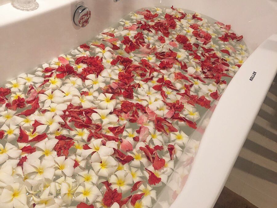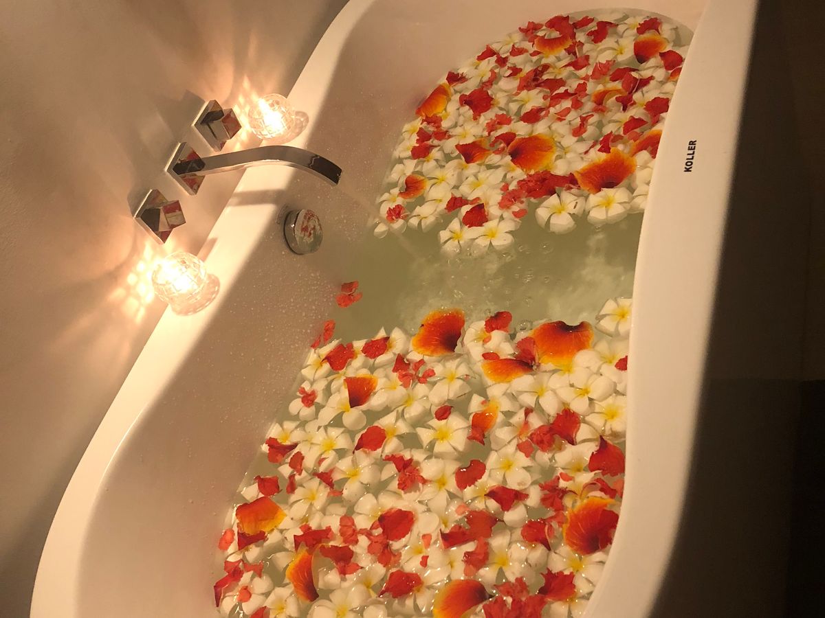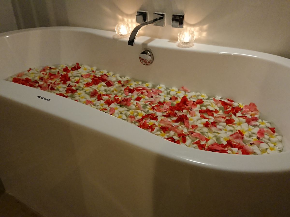 今回お受けいただいたコースでは、最後にお花の良い香りとゴージャスなお風呂に、