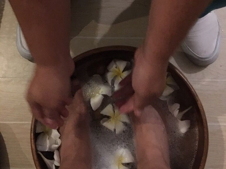 まずは足を綺麗にしてもらいます。この時に出たお茶、甘くてすごくおいしかったなぁ。