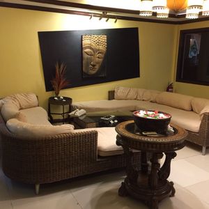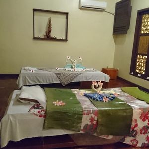 道路からゲートを入ると別世界。とても綺麗なところでした。マッサージを強くでお願いしたら、小さい体でこんなに力があるのかと驚句ほどの技術でした。ゴルフあと、とても充実したひと時でした。ただ送迎の時間が少し遅れたのと、マクタン島ならホテル以外でも無料で送ってくれるとのことでしたが、行きたいレストランを指定すると、400ペソいると言われましたことが少し残念でしたが。