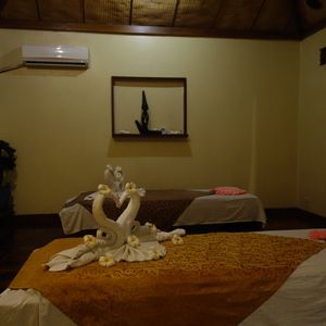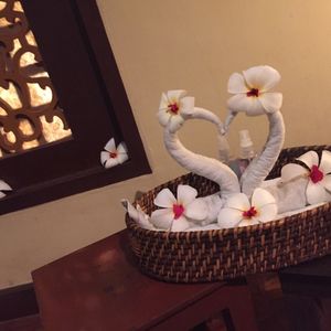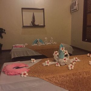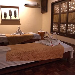 このサイトで「リピーター急増中!」とあったこのツアー。そこまで期待せずに申し込みましたが、最高でした。Aコースでも十分満足です。送迎もしっかりしてくれたし、お店は大きな門に警備員?付きの閉鎖された落ち着いたところ。日本人の方もいました。着替えを手伝ってくれた現地スタッフに「カメラを持って!」と言われ、?と思いながらも持って行くと、施術するコテージのようなところへ行くまでの庭でまず写真を撮ってくれました。そしておどろいたのが、そのコテージ。2人で予約して2人に施術してくれるスタッフ2人だけがいるという状態。そして、施術には本当にすてきなタオルアートにお花が一杯。そこでもたくさん写真を撮ってくれ、そのあとマッサージに入りました。マッサージも2時間たっぷりしてくれたし、時々強さなどをの要望を聞いてくれたし、最後はスタッフ教育のためとアンケートまで。とても素敵なお店と満足の施術。私も時間があったらもう一度行きたい!と本気で思いました。