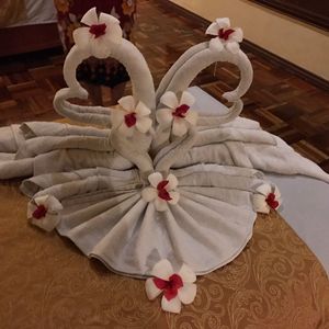その後、施術室に入ってベッドの上にタオルアレンジされており、こちらでも記念撮影しました。