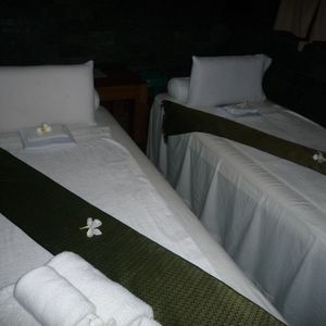 ホテルから渋滞していたため約30分、陽気なドライバーの運転でノアストーンスパへ。着いてすぐ部屋に案内されました。部屋は少し狭いですが、ヤモリがいなかったので一安心。簡単なアンケートを書きアロマオイルを7種類の中から選び、すぐマッサージが始まりました。私は中レベルの強さを選択しましたが、かなりしっかりやってくれます。時間配分はボディがかなり多めなのでフェイシャルはあっさりです。終わると着替えてすぐ送ってもらいあっという間にホテルへ。