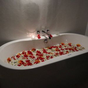 今回お受けいただいたコースでは、最後にお花の良い香りとゴージャスなお風呂に、