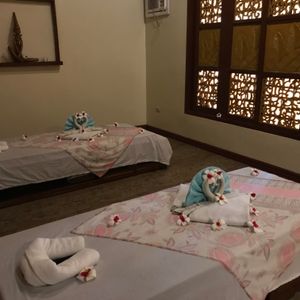 スパは、こじんまりした建物の2階にあって全的に清潔感があり綺麗です。受付には日本人女性スタッフがいるので、親切に説明してもらえてとても助かりました。オイルマッサージは6種類のアロマオイルから選ぶのですが悩んでいると「フィリピンの国花はジャスミンなので旅行の思い出にいかがですか」とお勧めしてくれましたので即決!友人と2人同じ個室で施術を受けれたので安心感もありますし施術してくれる地元の女性も終始笑顔で対応してくれ、マッサージも丁寧でとても気持ちよかったです。フライトの疲れでゴリゴリだった体がほぐされて楽になって帰ることが出来ました。