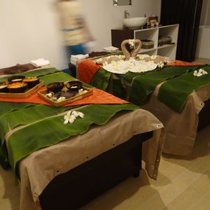 180分のコースには、フット角質ケア、ボディスクラブ、バナナの葉っぱでのボディラップ、ヘッドマッサージ、ボディマッサージ、フェイシャルが含まれてました。フット角質ケアは足裏真ん中から指の裏あたりばかりで、かかとは殆ど触ってなかったです。全体をゆるい感じでケアされる感じでした。ヘッドマッサージは主にラップをしてる時にしてくれましたが、ボディマッサージの時も少しヘッドもマッサージしてくれました。強いマッサージに慣れてる私には物足りなかったので、もっと強くマッサージしてくれるようお願いしました。時々強さ加減は大丈夫かと確認しながら施術してくれました。ボディラップが終わると、シャワーで髪と体を洗い、ボディマッサージに入りました。時折タイマッサージみたいに少し体を伸ばしたりして気持ちよかったです。フェイシャルもフットケアと同じく、割とさらっと終わったような感じです。