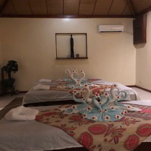 セブ旅行の最終日の帰国前に体験させてもらいました。早めについたのですが、すぐ施術してもらうことができました。日本人がいて日本語も通じるので安心しました。施術するスタッフは現地の人ですが簡単な日本語は通じました。案内された部屋は広く、良い香りがしてとても綺麗でした。フットケアをして頭から足先までアロママッサージ、最後にはフラワーバスをしてもらいとてもリラックスでき気持ちよかったです。またセブ島に行った際には行きたいと思います。