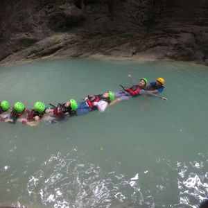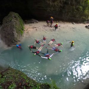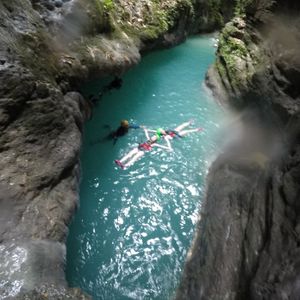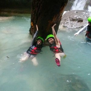 今回は妹と2人でジンベイザメとのシュノーケリングとキャニオニングに参加させていただきました。ホテルのピックアップが朝の4:30とかなり早朝のツアー開始でしたが、車で爆睡し続けたため、気づいたらシュノーケリングのビーチに付いてました。途中で朝ごはんを買うためにJollibeeに寄ってくれていましたが、私達は持参していたため、購入しませんでした。シュノーケリングの際の写真は、ガイドさんがうまく撮ってくれ、いい写真が撮れました。こんなに近くでジンベイザメを見れると思っていなかったので、結構感動しました。キャニオニングは、少し移動してから、山の上まで行ってのスタートでした。川自体は綺麗だし、ガイドさん達がすごく上手にサポートしてくださるし、写真もポイントを外さずに撮ってくれるので、安心して楽しめます。崖からの川へのダイブは、恐かったですが、チャレンジして良かったです。最初から最後までスタッフさんがすごくサポートしてくれるので、本当に安心して楽しめるツアーでした。