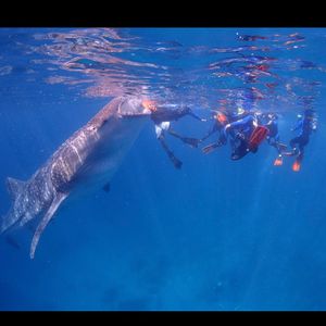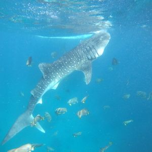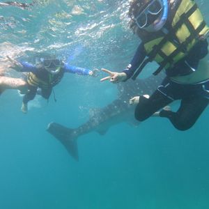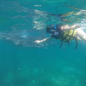 セブ島旅行の一番の楽しみとして予約・参加しました!当日朝は4時台の集合でしたが、10分前に到着した際にすでに係りの方が到着されておりとても安心できました。朝食としてジョリビーにも連れていっていただき、ホテル周辺にジョリビーがなかったのでとても嬉しかったです。ガイドの方は3名いらっしゃいましたが、とても笑顔が素敵で気さくな方々でした。ジンベイザメは思ったよりもとても大きくて感動しました!その後もスミロン島、シュノーケリング、マンゴー、ツマログの滝と盛りだくさんでとても満足です。このツアーでは写真撮影が付いており、ジンベイザメとの撮影はもちろん、シュノーケリングや海背景の砂浜写真も撮っていただけます。海だとスマホを取り出したりするのも大変ですし、2人で行ったので2人一緒の写真を撮っていただけたのはとてもありがたかったです。本当に素敵な1日になりました。ありがとうございました。次は別のツアーにも参加してみたいです!