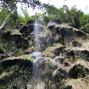 ゆっくりお昼を食べた後はツマログ滝へ。途中、一瞬だけバイクに乗り換え二人乗りして行きます。天気が良くて滝も綺麗で神秘的な空間でした!水量が多い日は虹もきれいに見えるそうです。