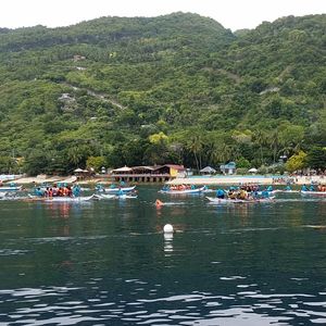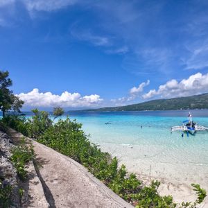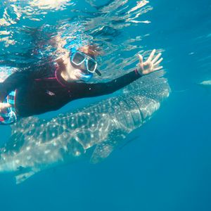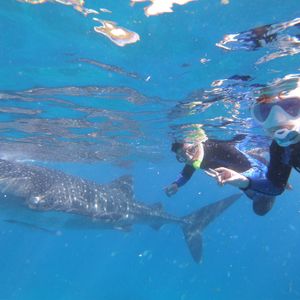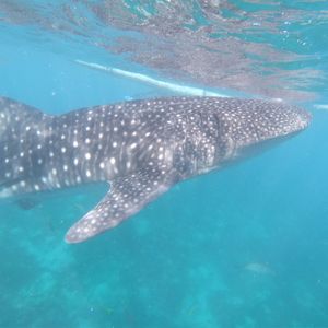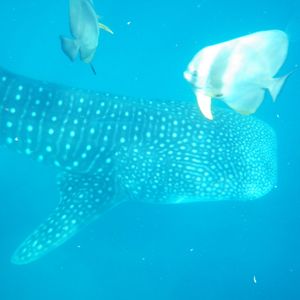 夫婦2人で参加しました。早朝4:50集合だったため、周りがまだ暗い中オスロブへ向け出発。途中、朝食とトイレ休憩のためJollibeeに寄り、バーガーセットを購入しました。食べきれなかった分は車内で食べることができました。車内で寝ていたらあっという間にオスロブに到着。ウェットスーツに着替え、GoProを借りて、船に乗り込み、ジンベイザメの近くへ。ジンベイザメは大きくてかなり迫力満点!! 他の国の観光客もたくさんいましたが、インストラクターさんの誘導もあり、かなり近くで良い写真を撮って貰うことができました。その後、船に戻り、すぐ近くのスミロン島に向け出発。スミロン島は海が透き通っていて、とても綺麗な島でした! 上陸し、写真撮影を楽しんだあとで船に戻ると、船員さんがマンゴーとバナナを準備してくれていました。とても甘くて美味しかったです。その後、シュノーケリングポイントまで移動し、シュノーケリングを楽しみました。陸に戻って、着替えたあとには、お待ちかねのランチタイム。フィリピン料理を頂きましたが、どれも美味しかったです。また、車に乗りこみ、すぐ近くのツマログの滝まで移動しました。滝の前まで行くときに、現地の方のバイクの後ろに乗るのですが、そこもアトラクションみたいでおもしろかったです。ツマログの滝はマイナスイオンたっぷりでとても癒されました!! 自然のドクターフィッシュには十分に足を綺麗にしてもらえました。 帰りもほぼ爆睡でしたが、途中トイレ休憩でコンビニ?に寄ってくれて、そこで飲み物などを買うことができました。GoProは一日借りることができ、たくさん写真や動画を撮ることができました。インストラクターさんは日本人の方と、現地スタッフの日本語を話せる方が同行してくださいましたが、とても親切で思い出に残る素敵な1日を過ごすことができました。ありがとうございました。