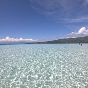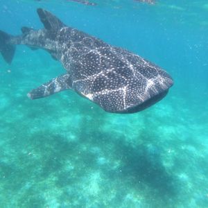 浜辺に近いところで、ジンベイザメが10頭ほど、泳いでいました。あんなに近くでジンベエザメを見ることができとても感動しました。