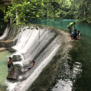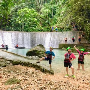 ジンベエザメのあとに向かうキャニオリングは水質がとても綺麗なことで有名なカワサン滝の上流からスタートします。