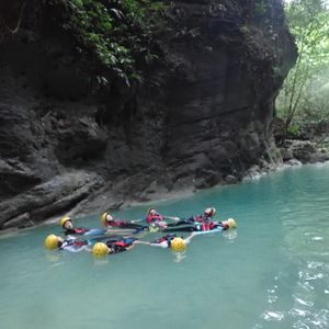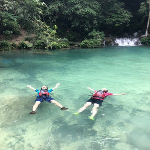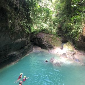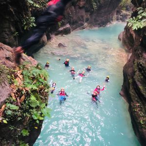 朝早かったので朝食を食べずに行きましたが、ガイドさんが朝食にジョリビーに寄るか聞いてくださります。ジンベイザメツアーは船のすぐ近くでジンベイザメが見えます!!ライフジャケットを着ているので潜ることは難しかったのですが、充分楽しめました。そこから1時間半ほどして、キャニオニングの会場につき、昼食をいただきました。美味しいバーベキュー料理でした。キャニオニングは、ガイドさんも一緒に行ってくださり、現地ガイドさんもとても優しい方でした。写真もゴープロもたくさん撮っていただき、大満足です。ジャンプは初めは怖いと思いましたが、飛んでみると、最高の気分になります。川の水もとてもきれいです。誰かにセブ島のオススメを聞かれたらこのツアーを紹介したいと思います。ありがとうございました(*^^*)