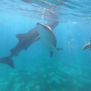 水族館などで見るのと違って目の前で手を伸ばしたら触れる距離で泳いでるジンベイザメに感動です。