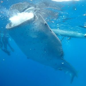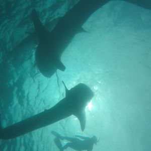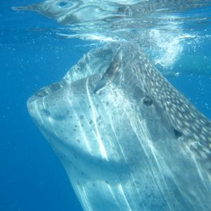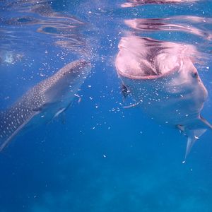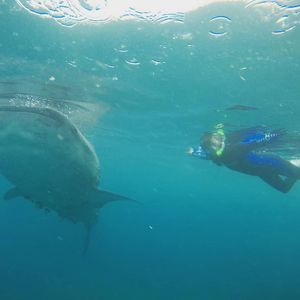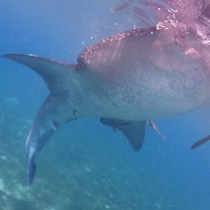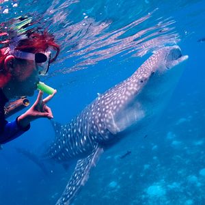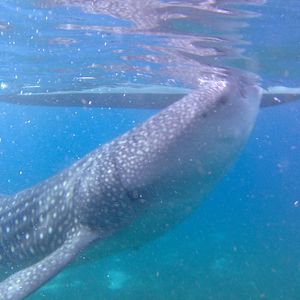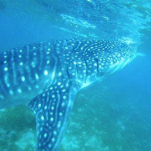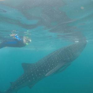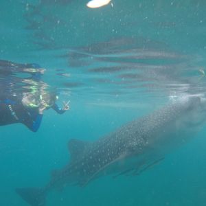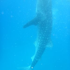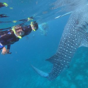 ジンベイザメから10cmくらいの距離まで近づけました。日本では海遊館と美ら海でしか見れないジンベイザメと一緒に泳げて、本当に良い経験をさせていただきました。写真もたくさん撮ってくれますので水中カメラを持っていなくても大丈夫です。しかし、サンドバーを見たい場合は雨季に行くのはやめた方がいいです。海の中に沈んでますので。