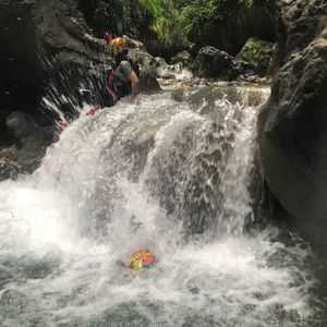 雨で足元が悪く、滑るしどこに足をおいたらいいかわからないこともたくさんありましたがガイドさん2人が手を貸してくれたり、大丈夫かと声をかけて頂いたり現地の話を聞いたりしながら楽しくキャニオリングできました!