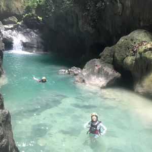 川がエメラルドグリーンで綺麗で川の流れをいかしてスライダーみたいに滑り落ちたり泳いだり、石の上を登ったり、高いところから飛び込みした事はなかったですが飛び込みしたりと女性2人でハードで疲れましたがマイナスイオンもたっぷりで疲れも吹っ飛ぶくらい楽しいですしリフレッシュできました!