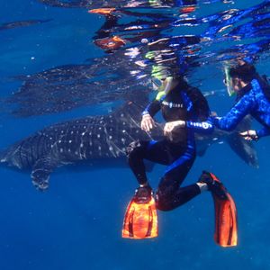 女2人でジンベイザメと泳ぐツアーに参加しました。